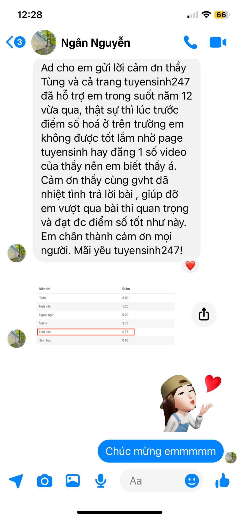 • Tặng thêm 10 đề tự luyện với phòng luyện online bấm tốc độ, thi là biết điểm ngay! • Được xem lại video bài giảng. • Có file tài liệu, file đề để học sinh xem trước buổi học + BTVN ngay sau kết thúc buổi học trên trang Tuyensinh247.com • Được hỗ trợ hỏi đáp trên trang TS247 + nhóm zalo. Trả lời trong vòng 30 phút từ 7h - 22h. Giao lưu trực tiếp với Thầy • Tham gia thi thử TN THPT Free với học sinh trên toàn quốc. |