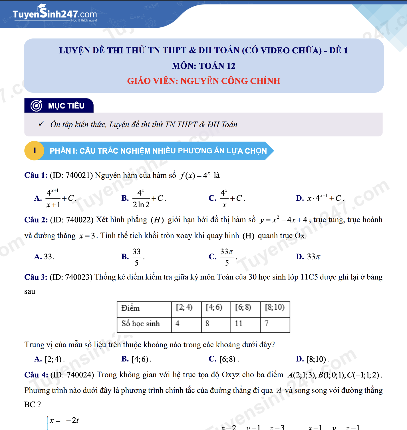 LUYỆN ĐỀ THI THỬ TN THPT & ĐH MÔN TOÁN - NĂM 2026 - CÓ VIDEO CHỮA - THẦY NGUYỄN CÔNG CHÍNHXem chi tiết