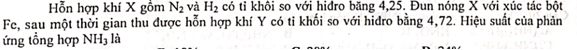 MX = 8,5 => Áp dụng qui tắc đường chéo ta có : nH2 = 3nN2