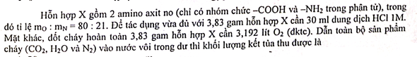 Có mX + mO2 = mCO2 + mH2O + mN2 => 44x + 18y = 7,97g