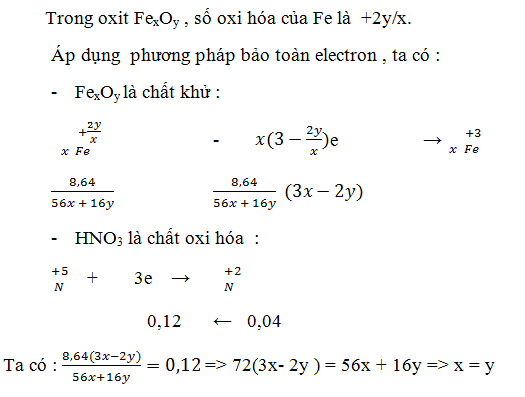 Hòa tan hoàn toàn 8,64 gam một oxit sắt trong dung dịch HNO3 thu được 0,896 lít khí NO (đktc ) duy