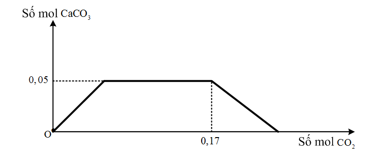 Hấp thụ hết khí CO2 vào 100 ml dung dịch NaOH x mol/l và Ca(OH)2 y mol/l. Lượng kết tủa tạo thành được biểu diễn trên đồ thị sau:
