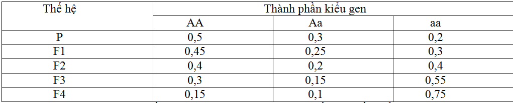 Một quần thể sinh vật ngẫu phối chịu tác động của chọn lọc tự nhiên có cấu trúc di truyền ở các thế hệ như sau:
