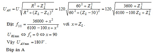 . Đặt vào hai đầu đoạn mạch một điện áp xoay chiều ổn định có biểu thức uAB = 120√2cos(100πt + π) (V). Điều chỉnh L đến giá trị L = L0 thì điện áp hiệu dụng hai đầu đoạn mạch AN lớn nhất bằng