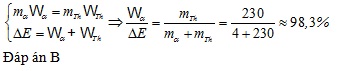 Hạt nhân urani U234 đứng yên, phân rã a và biến thành hạt nhân thôri (Th230). Coi khối lượng xấp xỉ bằng số khối. So với năng lượng phân rã 1 hạt U234 thì động năng của hạt a chiếm cỡ khoảng
