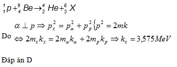 Người ta dùng prôton bắn phá hạt nhân Bêri đứng yên. Hai hạt sinh ra là Hêli () và X. Biết