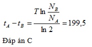 Có hai mẫu chất phóng xạ A và B thuộc cùng một chất có chu kì bán rã T = 138,2 ngày và có khối lượng ban đầu như nhau. Tại thời điểm khảo sát, tỉ số hạt nhân hai mẫu chất NA/NB = 2,72. Tuổi của mẫu A nhiều hơn tuổi mẫu B là