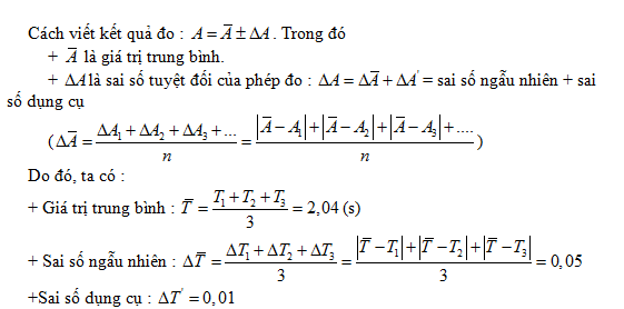 Một học sinh dùng đồng hồ bấm giây để đo chu kỳ dao động điều hòa T của một vật bằng cách đo thời gian mỗi dao động. Ba lần đo cho kết quả thời gian của mỗi dao động lần lượt là 2,01s; 2,12s; 1,99s. Thang chia nhỏ nhất của đồng hồ là 0,01s. Kết quả của phép đo chu kỳ được biểu diễn bằng