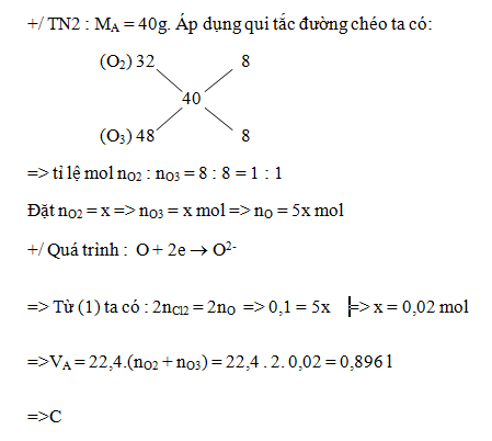 Chia 2m gam hỗn hợp X gồm Mg, Al và Cu thành hai phần bằng nhau. Phần một tác dụng với Cl2 dư, đun nóng thu được ( m + 7,1) gam hỗn hợp muối. Oxi hóa phần hai cần vừa đúng V lít hỗn hợp khí A ( đktc) gồm O2 và O3. Biết tỉ khối hơi của A đối với H2 là 20. Các phản ứng xảy ra hoàn toàn. Giá trị của V là