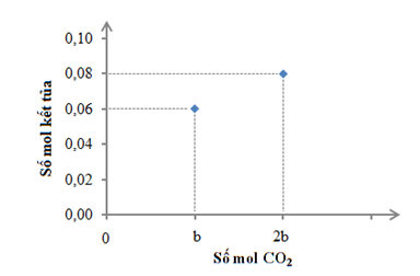 Sục từ từ CO2 vào V lít dung dịch Ba(OH)2 0,5M, kết quả thí nghiệm biểu diễn trên đồ thị sau :
