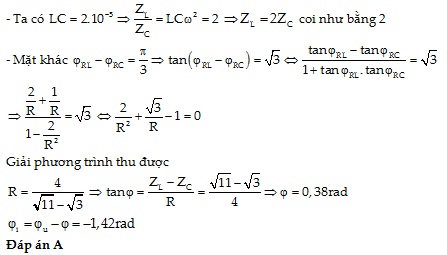 Cho đoạn mạch xoay chiều RLC nối tiếp, có LC = 2.10-5. Khi mắc vào hai đầu đoạn mạch điện áp