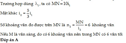Giao thoa ánh sáng với khe Y-âng. Khi chiếu bức xạ λ1 thì đoạn MN trên màn hứng vân đếm