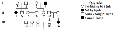 Sơ đồ phả hệ dưới đây mô tả sự di truyền của một bệnh ở người do một trong hai alen của một gen quy định.