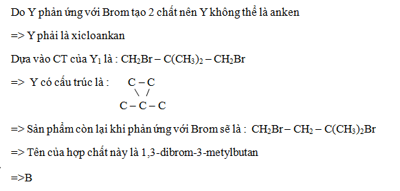 Chất hữu cơ Y có CTPT là C5H10 . Khi cho Y tác dụng với dung dịch Brom thu được 2 chất hữu cơ Y1 và Y2 , trong đó Y1 là 1,3-diBrom-2,2-dimetylpropan.Hãy cho biết tên của Y2: