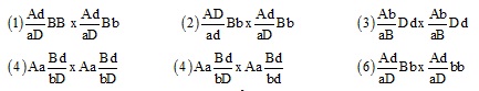 Ở một loài thực vật, qui ước A – B – cho kiểu hình quả tròn, A – bb ; aaB – ; aabb cho kiểu hình quả dài. Alen D qui định hoa đỏ, alen d qui định hoa trắng. Trong một phép lai (P) người ta thu được F1 có tỉ lệ kiểu hình là 3 tròn, trắng : 6 tròn, đỏ : 6 dài, đỏ : 1 dài, trắng. Không có trao đổi chéo xảy ra trong quá trình giảm phân. Trong phép lai sau đây :
