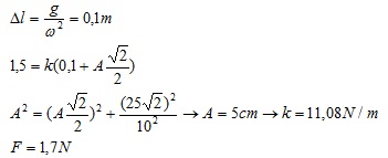 Một con lắc lò xo gồm lò xo nhẹ và vật nhỏ dao động điều hòa theo phương thẳng đứng với tần số góc 10 rad/s. Lấy mốc thế năng ở vị trí cân bằng của vật. Biết rằng khi động năng và thế năng bằng nhau thì độ lớn lực đàn hồi và tốc độ của vật lần lượt là 1,5N và 25√2 cm/s. Biết độ cứng của lò xo k < 20 N/m. Độ lớn cực đại của lực đàn hồi là
