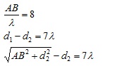 Giao thoa sóng nước với hai nguồn giống nhau A,B có tần số 40 Hz, cách nhau 10 cm. Tốc độ truyền sóng trên mặt nước là 0,5 m/s. Xét đường thẳng By nằm trên mặt nước và vuông góc với AB. Điểm M trên By dao động với biên độ cực đại cùng pha với nguồn và gần B nhất (không tính điểm B) là: