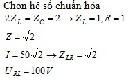 Cho mạch điện xoay chiều gồm có R, L, C mắc nối tiếp. Biểu thức hiệu điện thế đặt vào hai đầu đoạn mạch u = 100√2cos ωt (V). Với 2ω2LC = 1. Hiệu điện thế hiệu dụng trên đoạn mạch của cuộn cảm và điện trở là