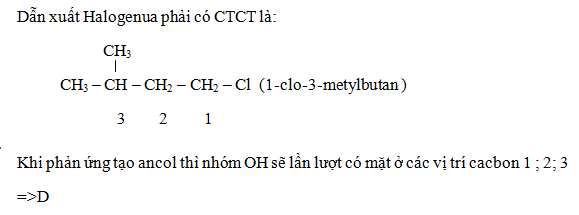 Biết A có CTPT là C5H11Cl. Tên gọi của A là: