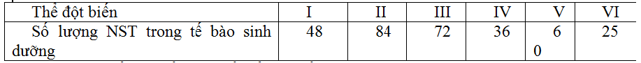 Một loài thực vật lưỡng bội có 12 nhóm gen liên kết. Giả sử có 6 thể đột biến của loài này được kí hiệu từ I đến VI có số lượng nhiễm sắc thể (NST) ở kì giữa trong mỗi tế bào sinh dưỡng như sau: