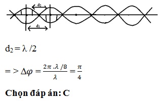 Một sợi dây đàn hồi đang có sóng dừng. Trên dây, những điểm dao động với cùng biên độ A1 có vị trí cân bằng liên tiếp cách đều nhau một đoạn d1 và những điểm dao động cùng biên độ A2 có vị trí cân bằng liên tiếp cách đều nhau một đoạn d2. Biết A1> A2> 0. Biểu thức nào sau đây đúng?