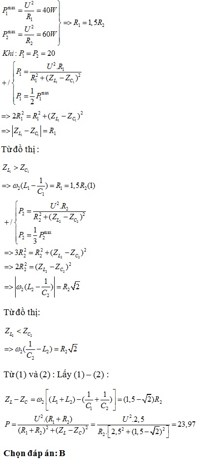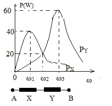( U không đổi ,ω thay đổi được) vào 2 đầu của đoạn mạch X và vào 2 đầu của đoạn mạch Y, với X và Y là các đoạn mạch R,L,C mắc nối tiếp. Trên hình vẽ Px và Py lần lượt biểu diễn quan hệ công suất tiêu thụ của X với w và của Y với w. Sau đó đặt điện áp u lên 2 đầu đoạn mạch AB gồm X và Y mắc nối tiếp. Biết cảm kháng của 2 cuộn cảm thuần mắc nối tiếp ( có cảm kháng ZL1 và ZL2) là ZL=ZL1 + ZL2 và dung kháng của 2 tụ điện mắc nối tiếp ( có dung kháng ZC1 và ZC2) là ZC=ZC1+ZC2. Khi ω=ω2, công suất tiêu thụ của đoạn mạch AB có giá trị gần nhất với giá trị nào sau đây: