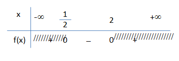Nhờ bảng xét dấu ta có nghiệm của bất phương trình là  frac{1}{2} < x < 2