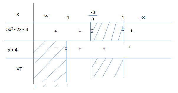 Vậy bất phương trình có nghiệm: -4 ≤ x ≤ -frac{3}{5}  v  -1 ≤ x