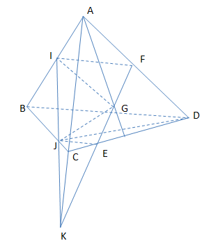 m{{ F}}} \ = > (IJG) cap (ACD) = EF\ (IJG) cap (BCD) = JE;(IJG) cap (ABD) = IF end{array}
