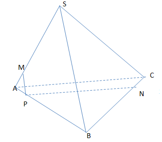 Cho tứ diện SABC . Trên các cạnh SA và BC lấy 2 điểm M , N sao cho \({{SM} \over {SA}} = {{BN} \over {BC}} = {3 \over 4}\). Qua N kẻ NP song song với CA ( P