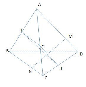 Chứng minh rằng overrightarrow {BC} ;overrightarrow {IJ} ;overrightarrow {AD}  đồng phẳng.