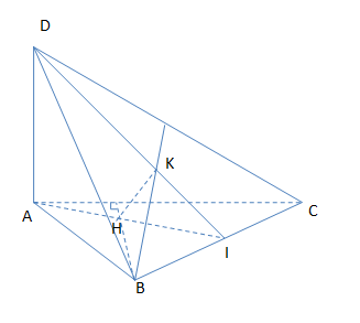Cho tứ diện ABCD có DA vuông góc với (ABC) và AI vuông góc với BC. Gọi H là trực tâm của tam giác ABC . Kẻ HK vuông góc với DI. Chứng minh HK vuông góc với (DBC) và K là trực tâm của tam giác DBC.
