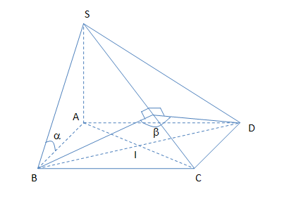 Vậy widehat {SBA} = alpha là góc giữa 2 mặt phẳng (SBC) và (ABCD)