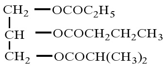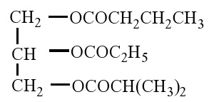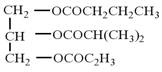 Đun nóng 7,2 gam este X với dung dịch NaOH dư. Phản ứng kết thúc thu được glixerol và 7,9 gam hỗn hợp muối. Cho toàn bộ hỗn hợp muối đó tác dụng với H2SO4 loãng thu được 3 axit hữu cơ no, đơn chức, mạch hở Y, Z, T. Trong đó Z, T là đồng phân của nhau, Z là đồng đẳng kế tiếp của Y. Công thức cấu tạo của X là: