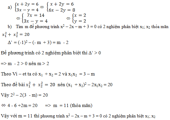 b. (1,0 điểm) Tìm m để phương trình x2 – 2x – m + 3 = 0 có 2 nghiệm phân biệt x1; x2 thỏa mãn