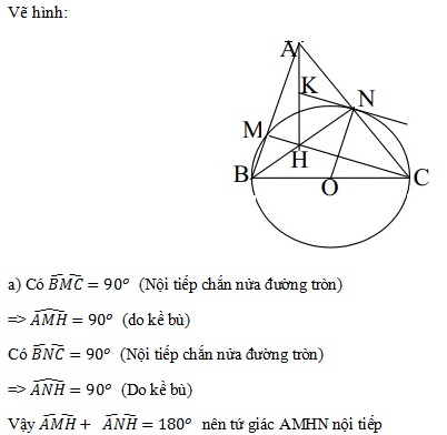 a. (2,0 điểm) Chứng minh rằng tứ giác AMHN nội tiếp đường tròn.