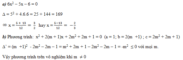 a) Giải phương trình 6x2 – 5x – 6 = 0