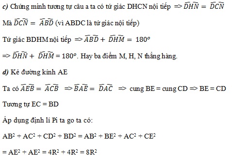 d) Chứng minh AB2 + AC2 + CD2 + BD2 = 8R2
