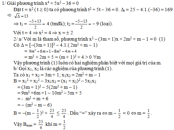 1/ (1,0 điểm) Giải phương trình x4 + 5x2 - 36 = 0