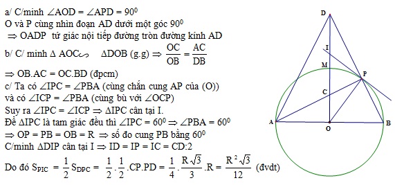 c/ Tìm vị trí của điểm P trên cung MB để tam giác PIC là tam giác đều. Khi đó hãy tính diện tích của tam giác PIC theo R.