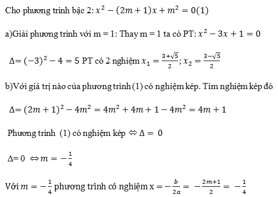 b) Với giá trị nào của m phương trình (2) có nghiệm kép. Tìm nghiệm kép đó.