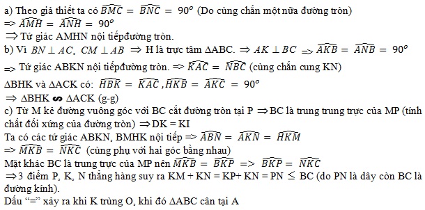 c) Chứng minh: KM + KN ≤ BC. Dấu “ =” xảy ra khi nào?