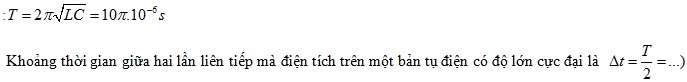 Một mạch dao động điện từ LC lí tưởng gồm cuộn cảm thuần có độ tự cảm 5 μH và tụ điện có điện dung 5μF. Trong mạch có dao động điện từ tự do. Khoảng thời gian giữa hai lần liên tiếp mà điện tích trên một bản tụ điện có độ lớn cực đại là