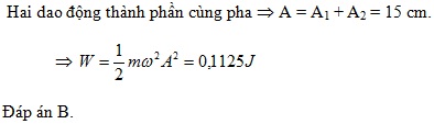 Dao động của một chất điểm có khối lượng 100 g là tổng hợp của hai dao động điều hòa cùng phương, có phương trình li độ lần lượt là x1 = 5cos10t và x2 =10cos10t (x1 và x2 tính bằng cm, t tính bằng s). Mốc thế năng ở vị trí cân bằng. Cơ năng của chất điểm bằng