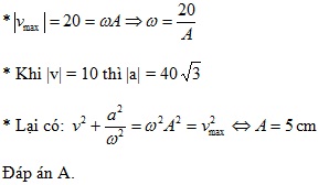 Một chất điểm dao động điều hòa trên trục Ox. Khi chất điểm đi qua vị trí cân bằng thì tốc độ của nó là 20 cm/s. Khi chất điểm có tốc độ là 10 cm/s thì gia tốc của nó có độ lớn là 40√3 cm/s2. Biên độ dao động của chất điểm là