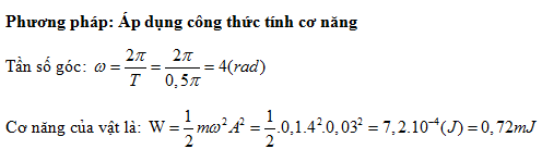 Một vật nhỏ có khối lượng 100g dao động điều hòa với chu kì 0,5s và biên độ 3cm. Chọn