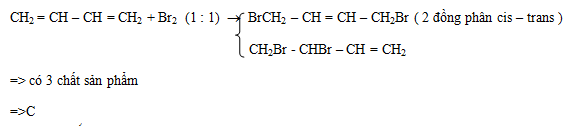 Buta -1,3- đien tác dụng với Br2 theo tỉ lệ mol 1 : 1 thu được bao nhiêu sản phẩm hữu cơ?