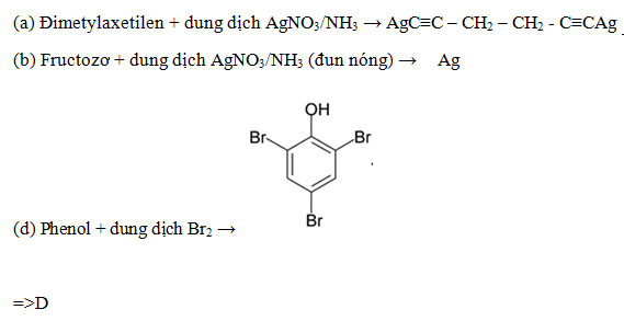 (a) Đimetylaxetilen + dung dịch AgNO3/NH3 →