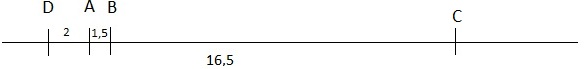 Trên một nhiễm sắc thể, xét 4 gen A, B, C và D. Khoảng cách tương đối giữa các gen là: AB = l,5 cM, BC = 16,5 cM, BD = 3,5 cM, CD = 20 cM, AC = 18 cM. Trật tự đúng của các gen trên nhiễm sắc thể đó là