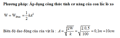 Một con lắc lò xo đặt nằm ngang gồm vật nặng m và lò xo có độ cứng k = 100 N/m. Kích thích để vật dao động điều hoà với động năng cực đại 0,5 J. Biên độ dao động của vật là